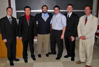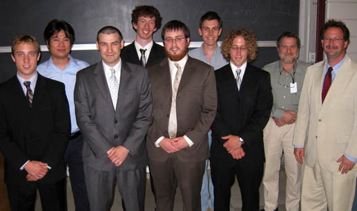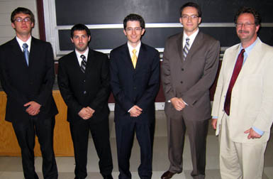 The Computer Science Department held its Seventh Annual Senior Design Competition Tuesday, May 26. Teams Beefeater, Clementine, TheraWii, and 4D Archaeological Data Exploration competed in the competition to select the outstanding senior design project. TheraWii took first place and will move on to represent the CS Department in the College of Engineering finals held June 3. This year’s competition was sponsored by donations from Integrated Network Consulting and Northrup Grumman.