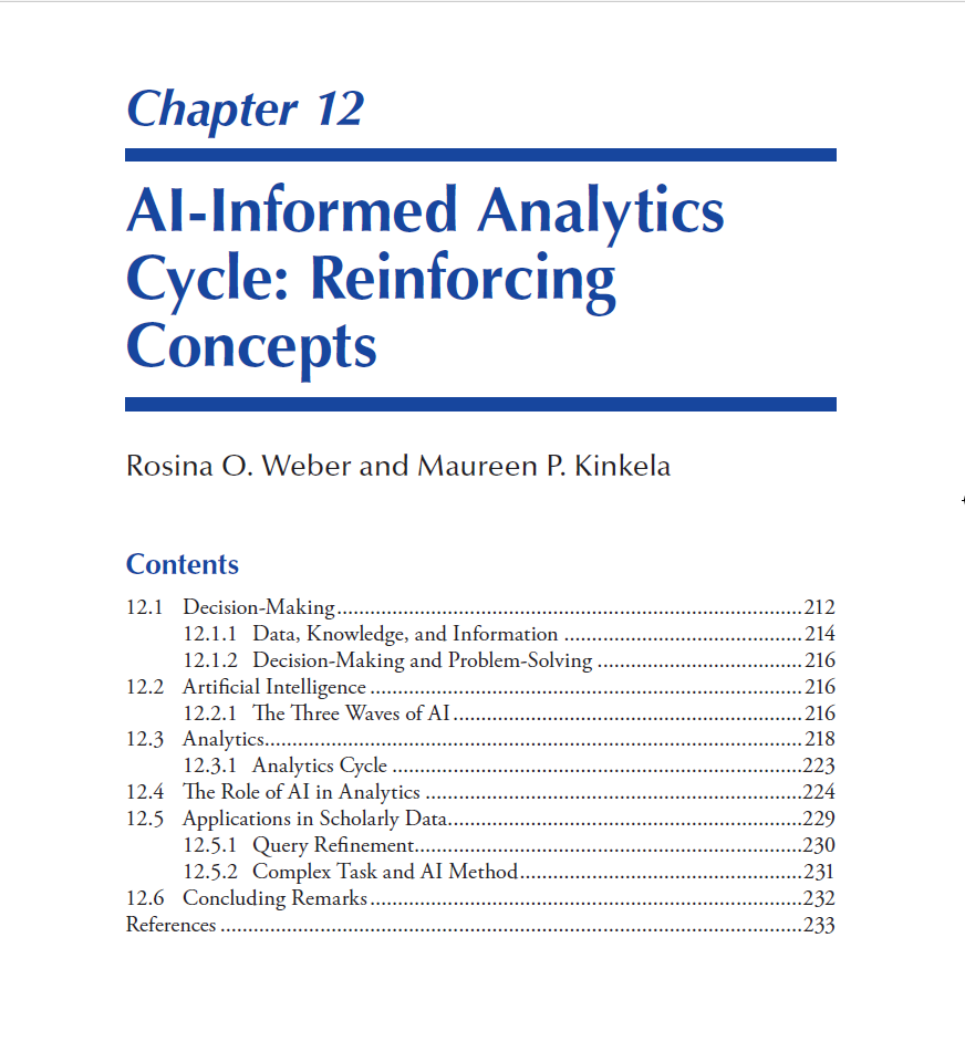 AI-Informed Analytics Cycle" with Maureen Kinkela in New book edited by Jay Liebowitz: DATA ANALYTICS AND AI
