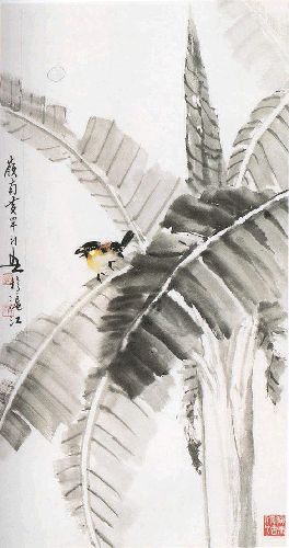 Bird and the banana leaf HUANG HUANWU (1906-1985)